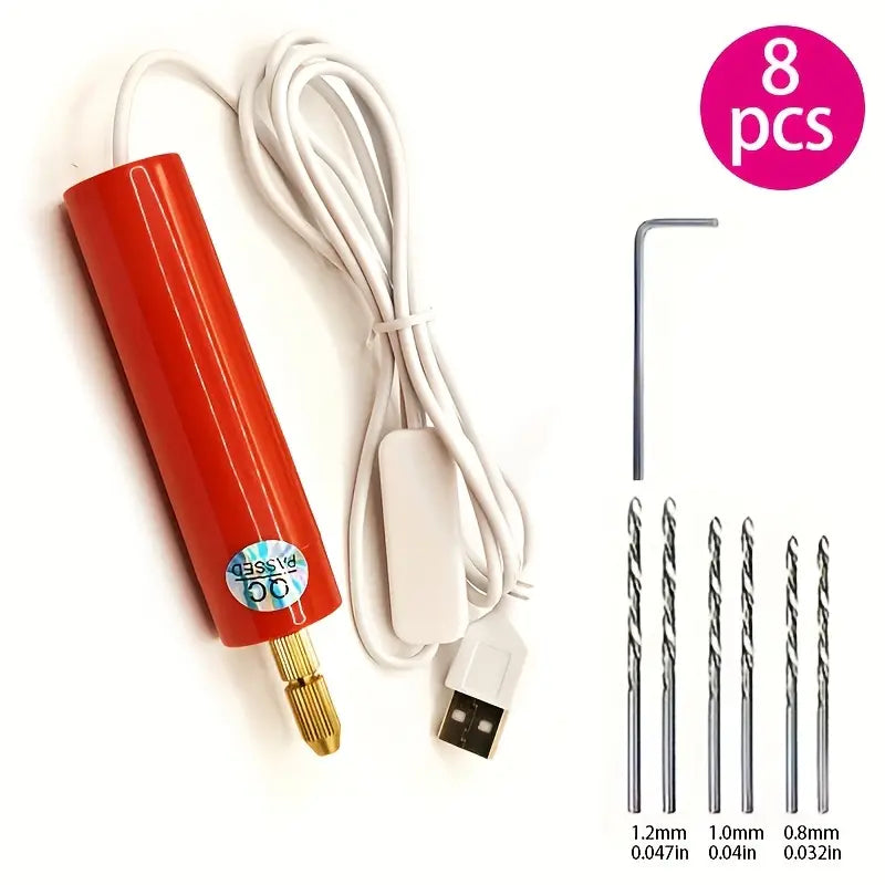 precise   compact red mini usb drill set for       portable with multiple attachments and accessories ideal for crafting detailed designs jewelry making supplies Product details 0